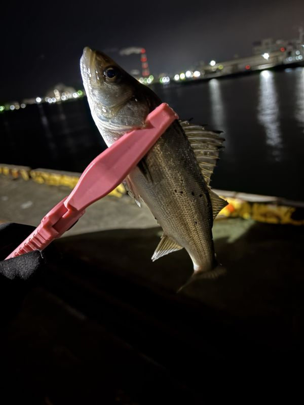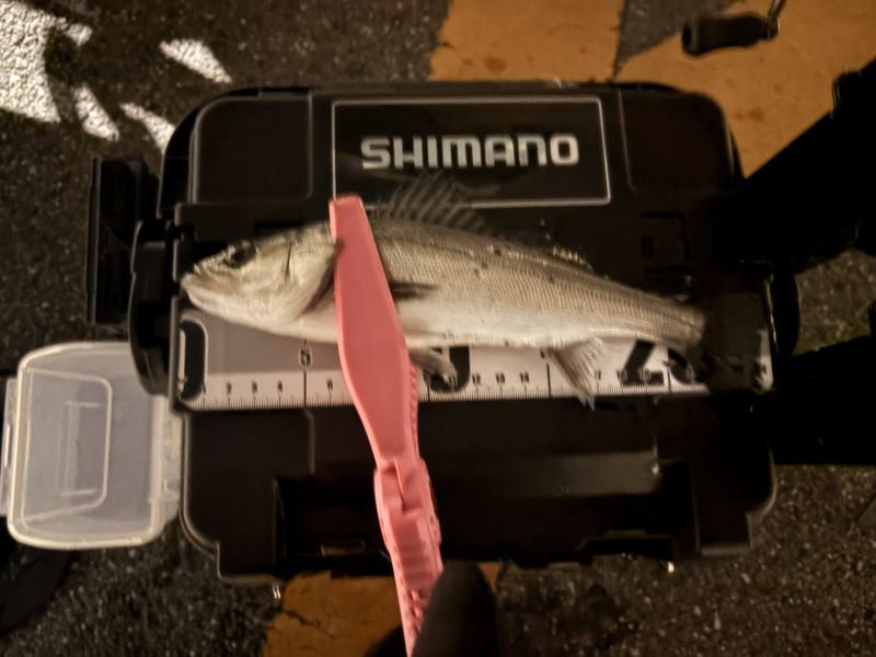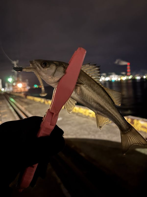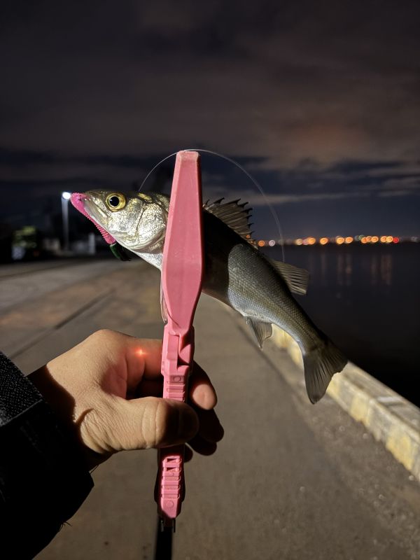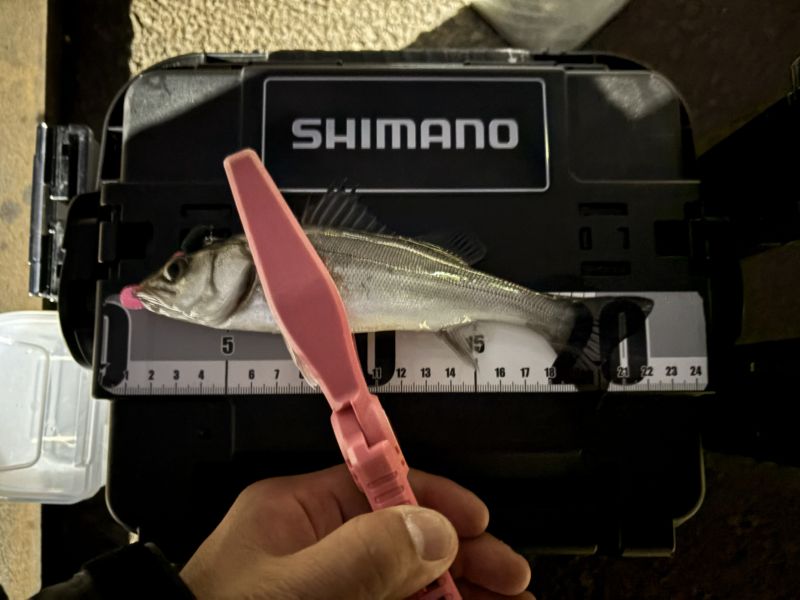 23:43ごろ、やっとの思いで21cmのセイゴが釣れました。