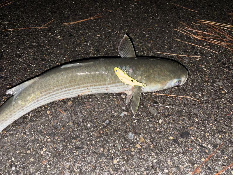 今回もメタルバイブで釣ることができました。ミノーやシンキングペンシルなど、シーバスで使うプラグも試してみましたが、魚のアタリはありませんでした。遠投ができてプラグよりもシルエットが小さいメタルルアーの方がボラに気づかれにくいのかなと思いました。