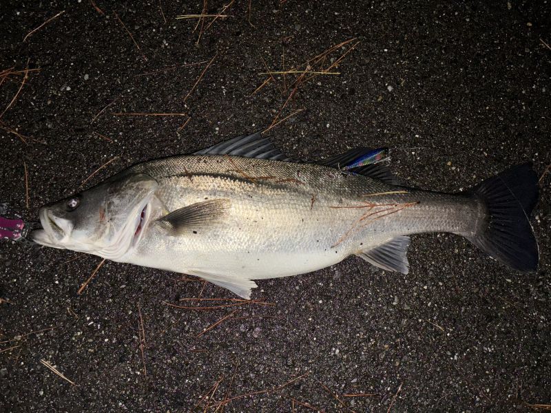 80cm以下なのでランカーシーバスではないですが、スレ掛かりで引きが強く、十分楽しませてくれました。